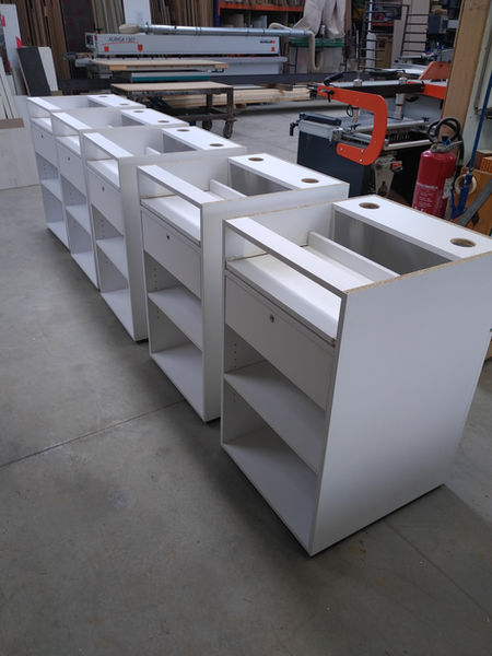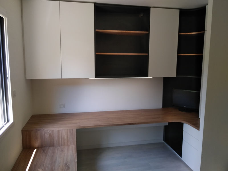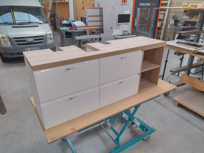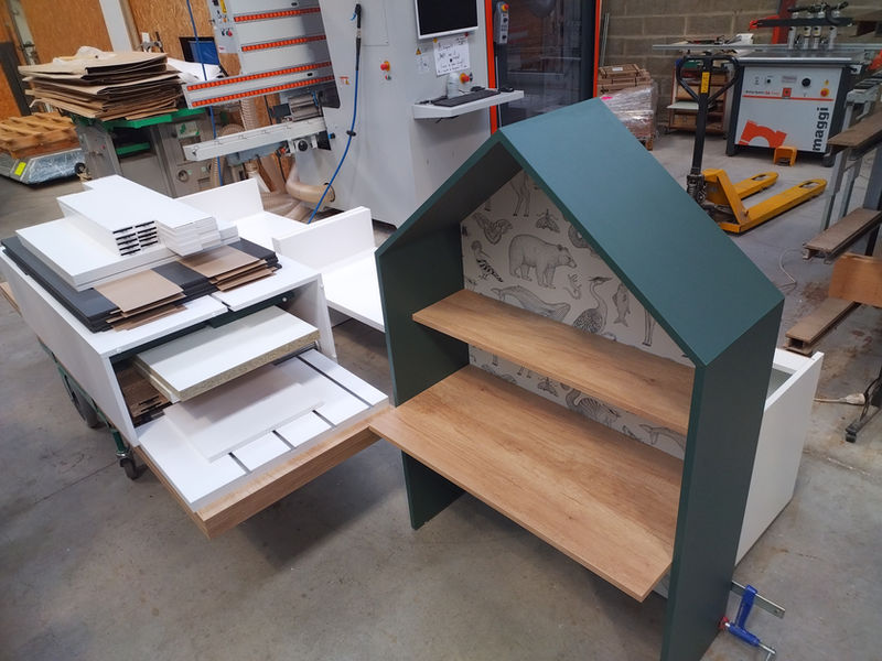 Tous nos agencements sont fabriqués dans notre atelier à St Avé, aux portes de Vannes, sur une ligne de production numérisée alliant qualité et productivité, de l'ouvrage unique à la petite série.